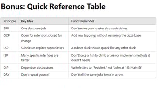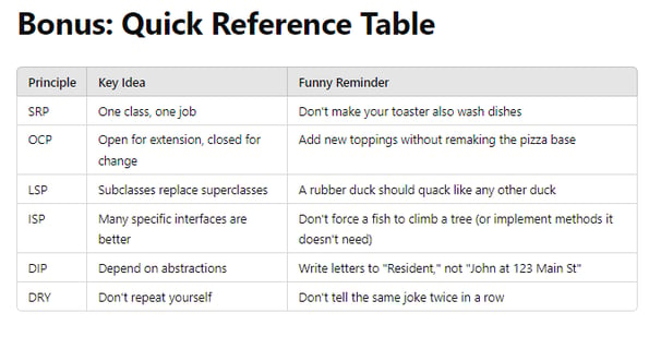 Think of the SOLID and DRY principles as the superhero training manual for your code. They help you fight off the villains of messy code and bugs. By following these guidelines, you write code that's not just functional but elegant—code that would make even your mother proud (even if she doesn't know what code is).