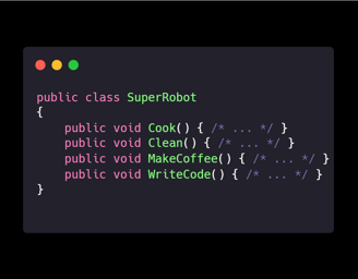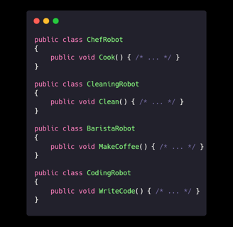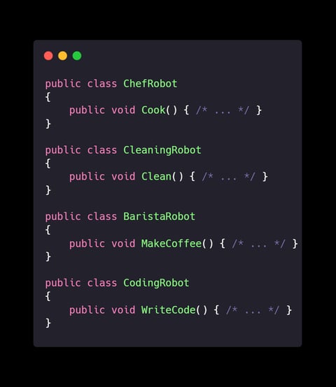 Explanation: By giving each robot one job, they become experts in their field—no more burnt coffee or buggy code!
